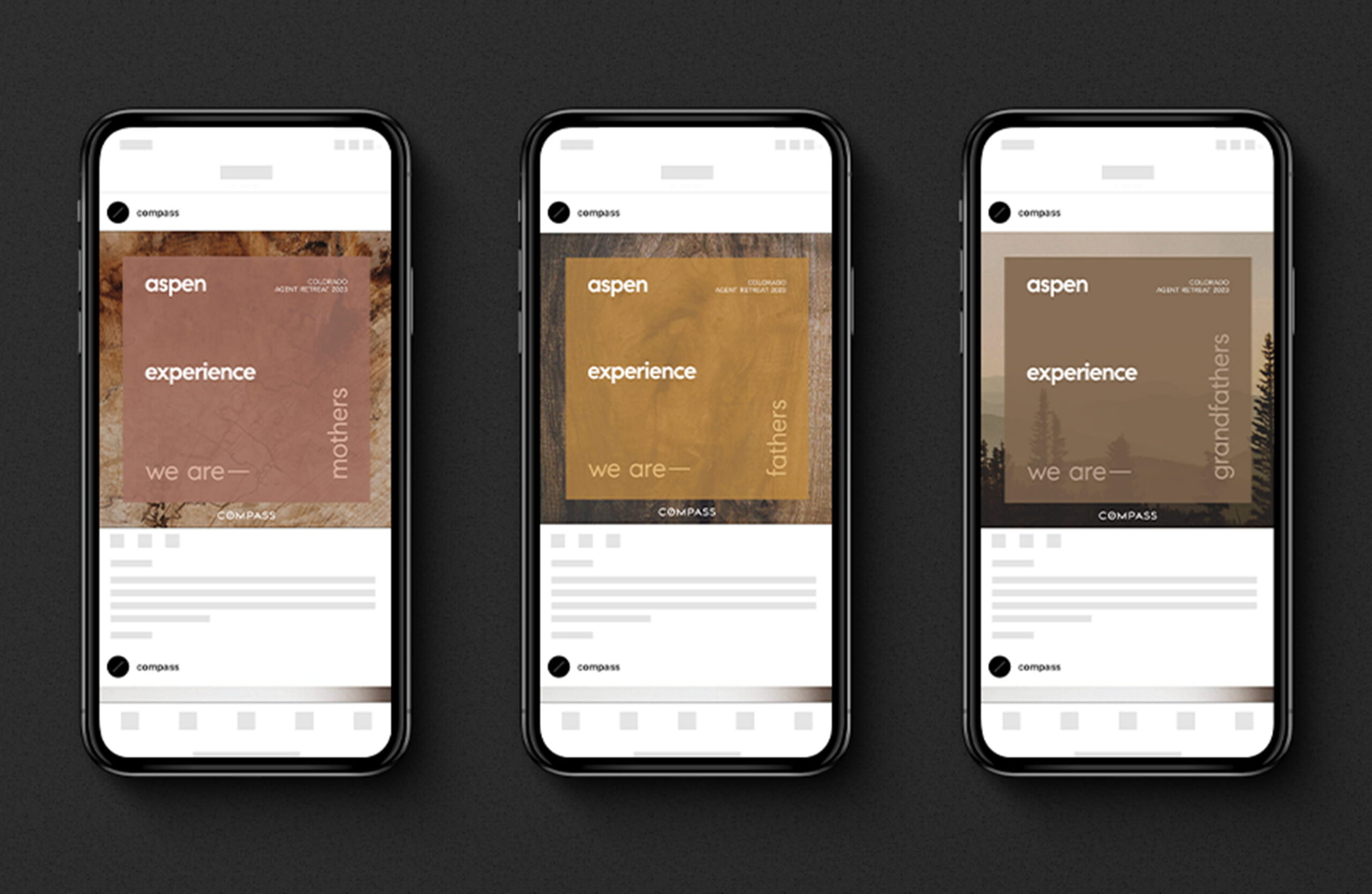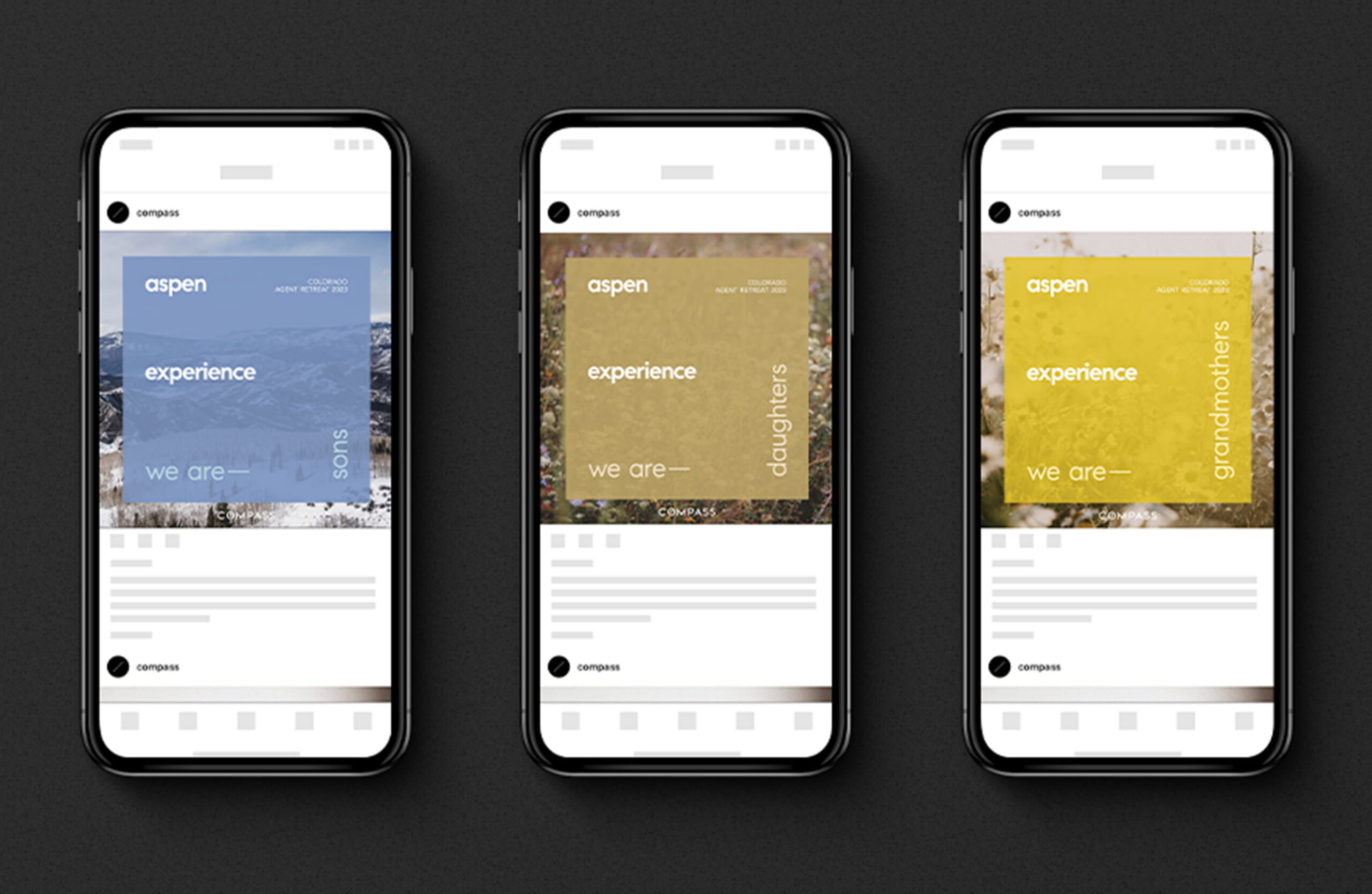 A social media library of assets was designed to encourage agent participation, share their pride in Compass, and celebrate their own family members, whether they be a son, mother, grandmother, and more.