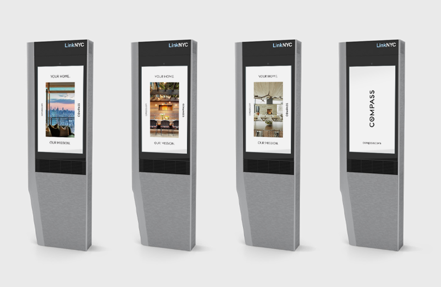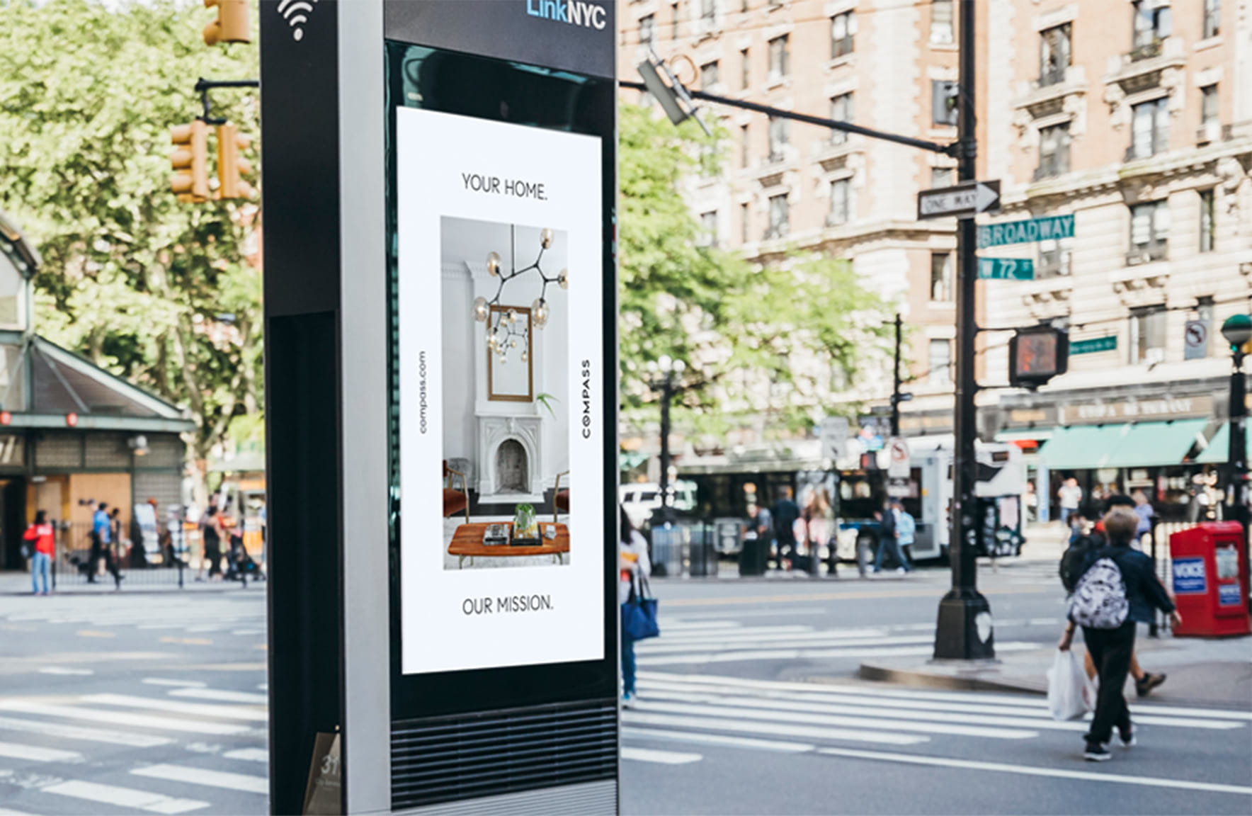 A collection of subway and bus shelter posters, NYC taxi tops, LinkNYC kiosks, street banners, and billboards were strategically designed for activation around Metro New York, further flexing the campaign’s visual system and framing Compass’s presence in their flagship region.