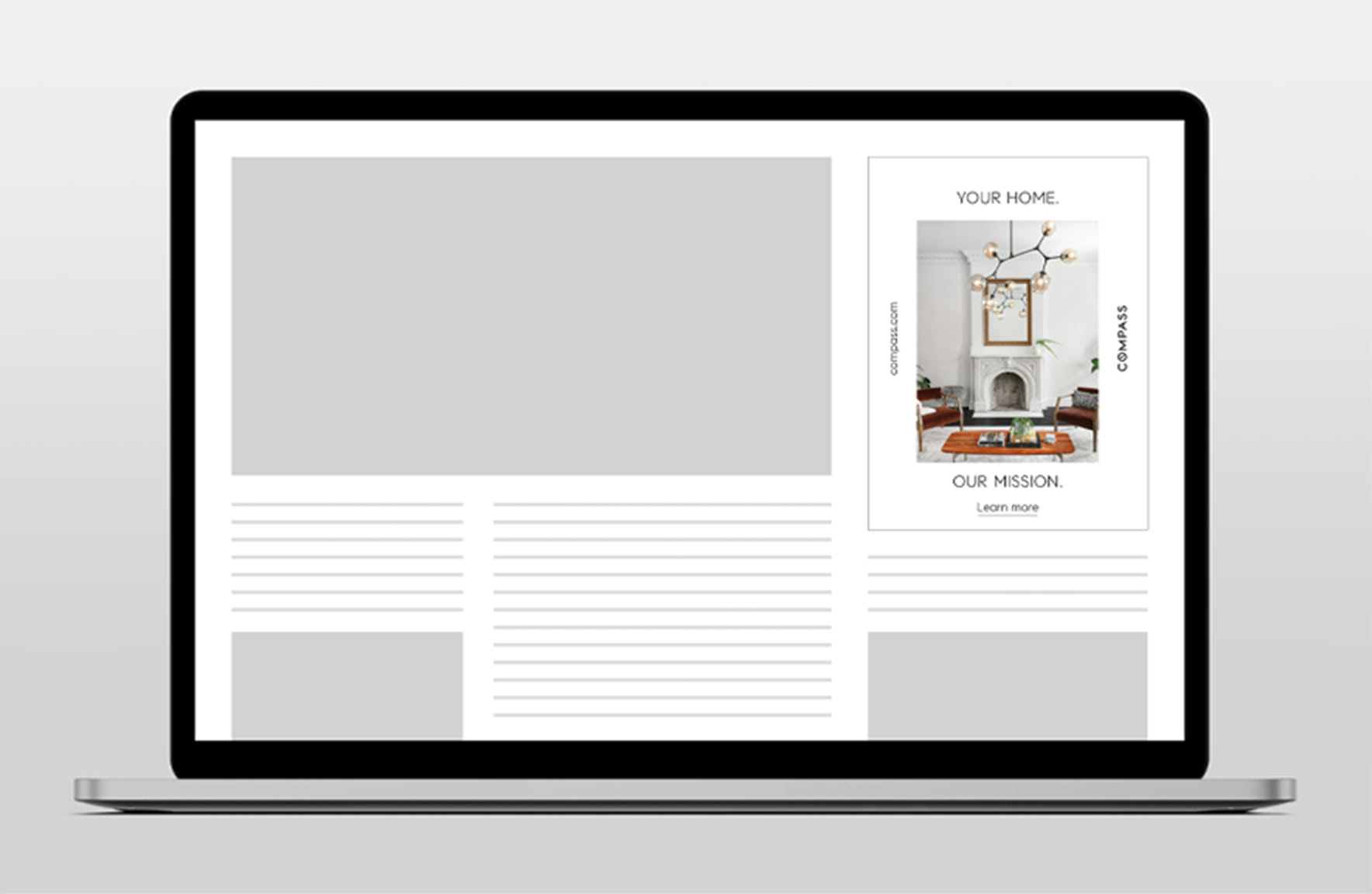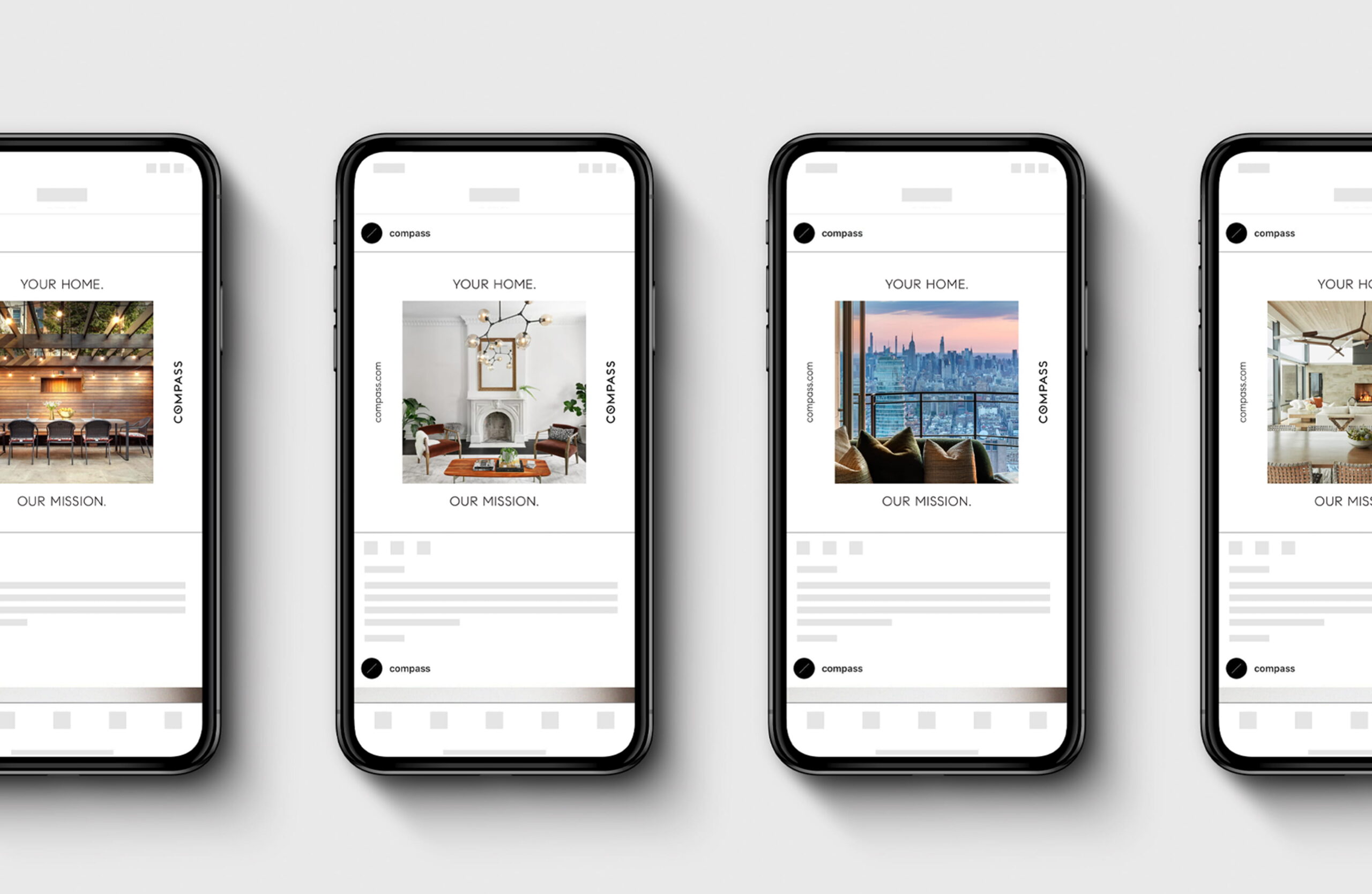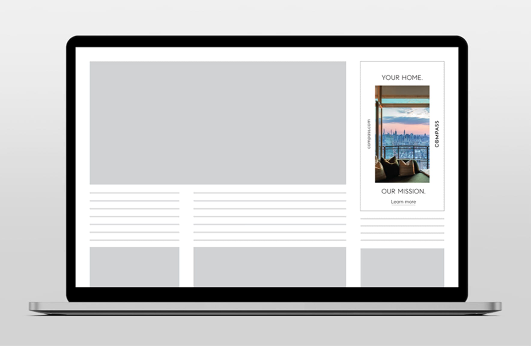 A system of banner ads in a variety of shapes and sizes were designed to drive traffic to compass.com and generate brand awareness.