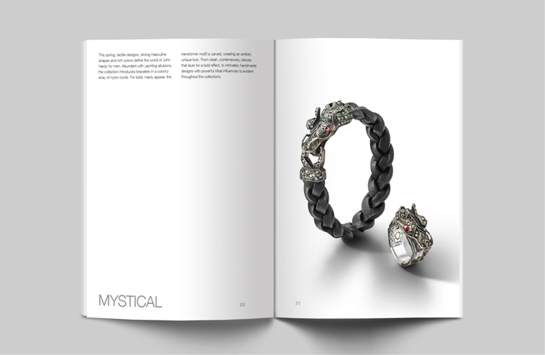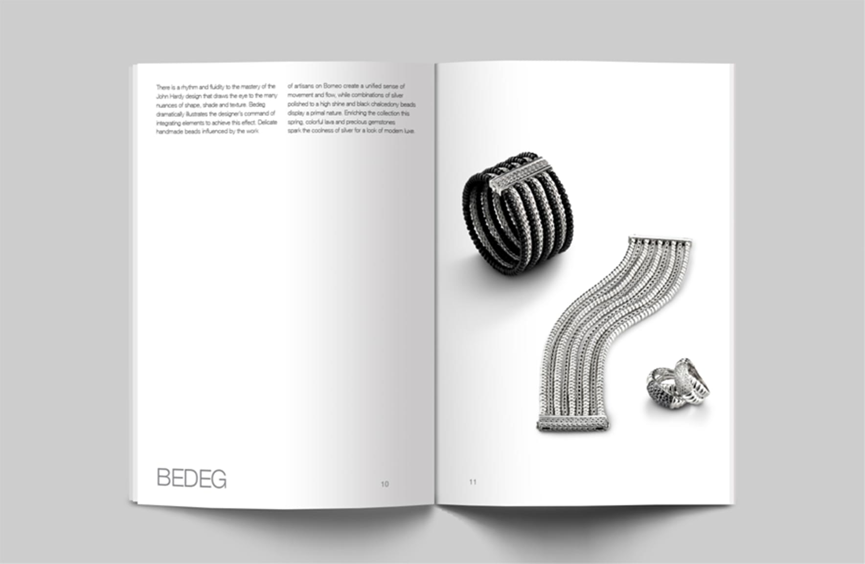 The John Hardy Balinese Techniques and Craftsmanship lookbook adopts a minimal, image-focused design, allowing the jewelry to reveal the unique beauty of the designer’s vision.