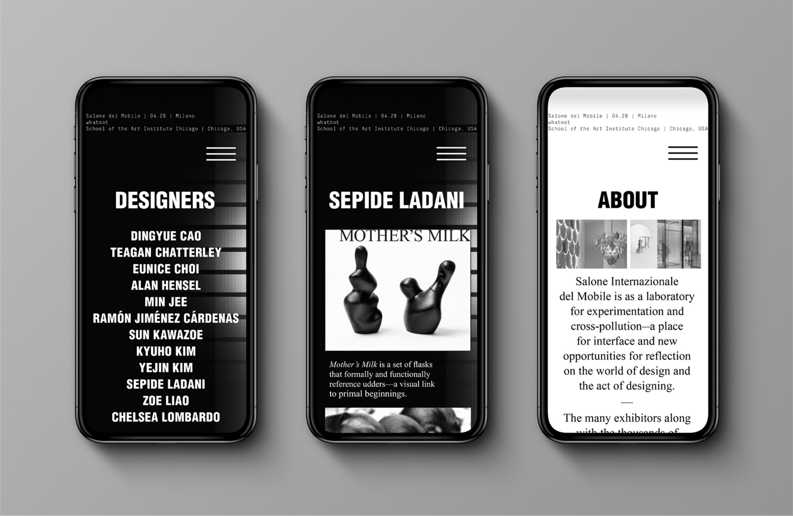 The design of the exhibition’s print and digital assets uses the absence of color and an emphasis on exposure to question our current cultural zeitgeist.