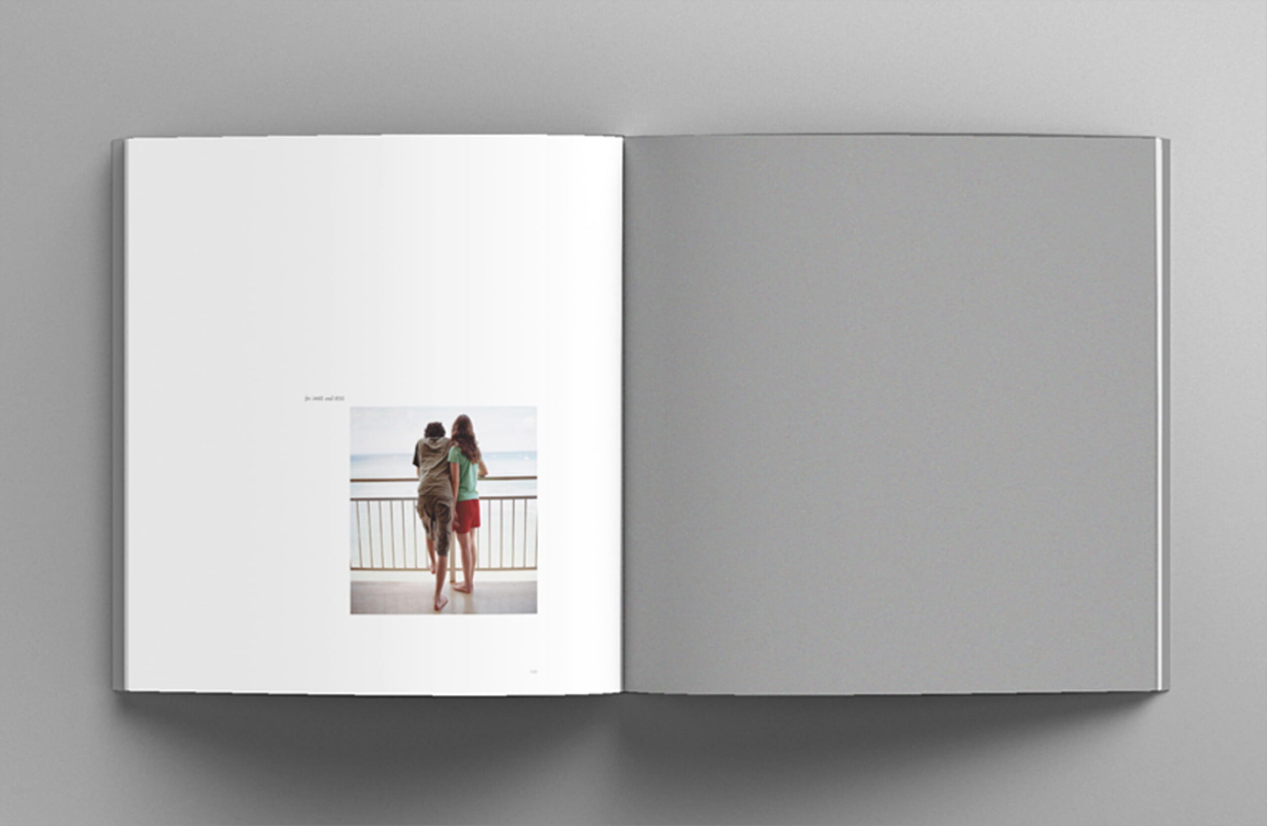 The front and spine of the case, covered in slate gray case cloth, are blind embossed, adding a tactile touch.