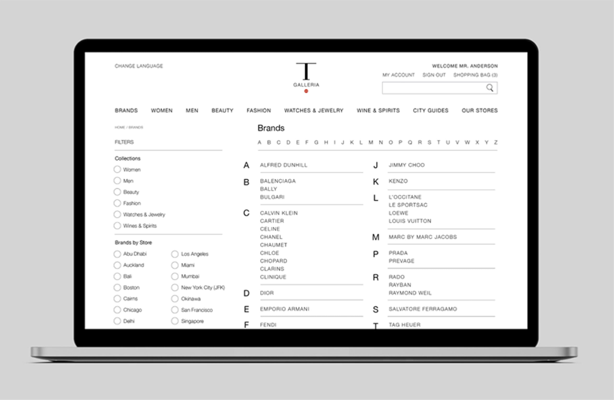 T Galleria Website Online Destinations